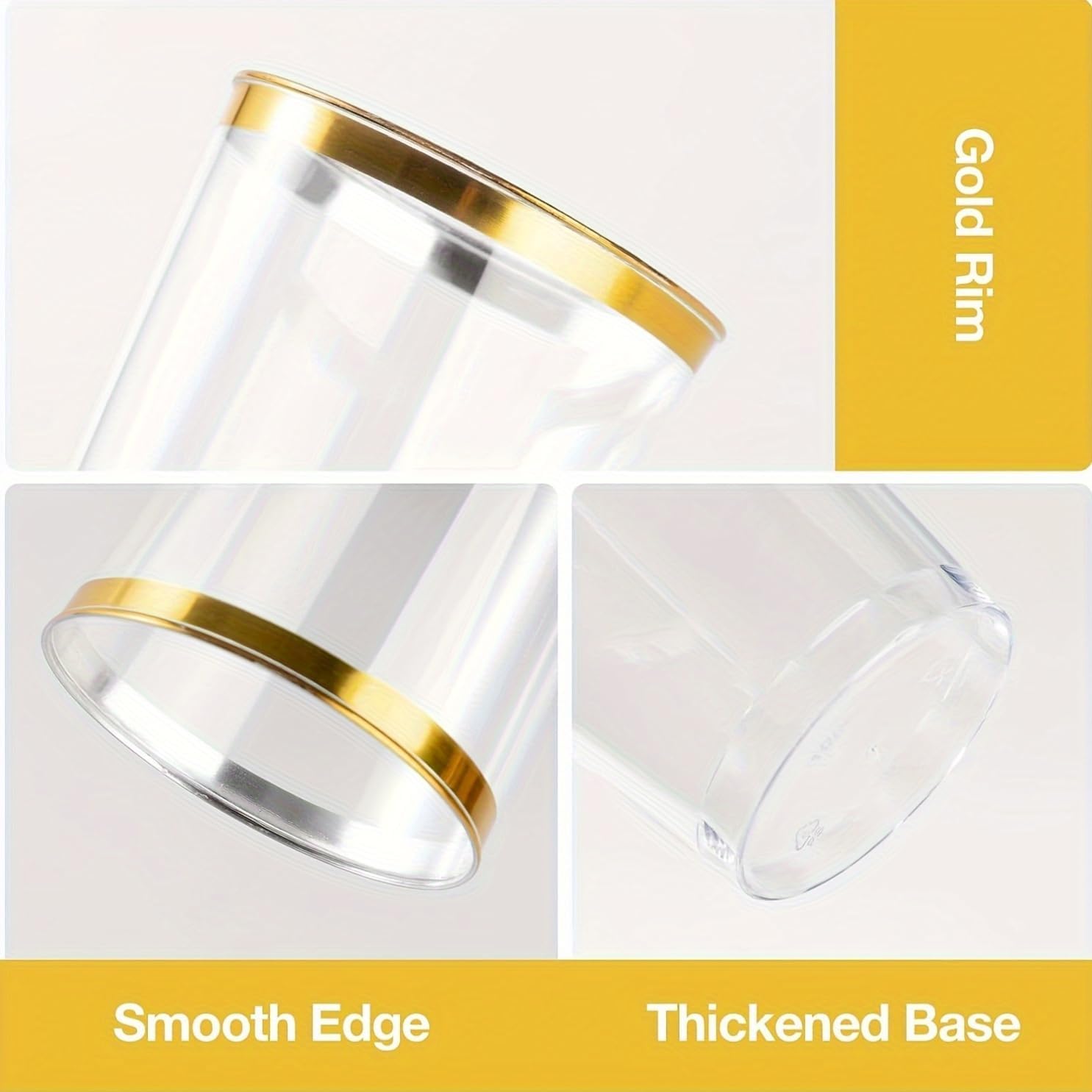 50pcs/100pcs Golden Plastic Cups 12oz, Premium Disposable Cocktail Glasses for Party, Wedding, Birthday, Bachelor Party, Carnivals, Christmas, Halloween, Easter, Hanukkah, July 4 - No Electricity Needed
