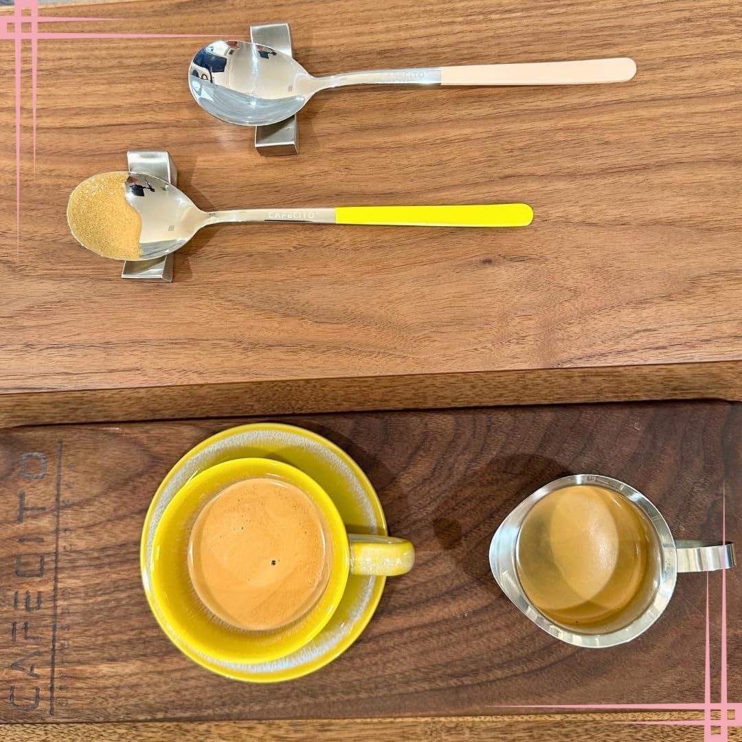| Included Components | A 6oz bell-shaped stainless steel pitcher for frothing crema, A Miami-inspired keychain, And a luxury 700gsm gold-stamped gift card to complete the experience, Two signature whisking spoons in Miami Yellow & Flamingo Pink with powder coating for grip and flair, Two spoon stands to keep your station tidy |