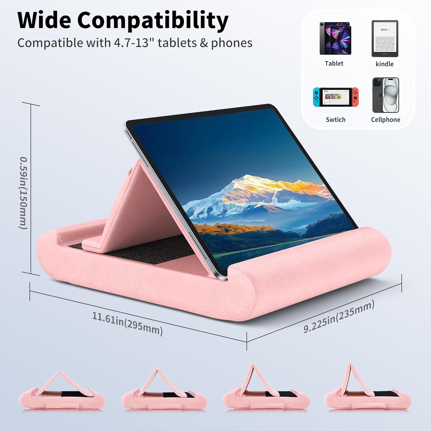 Discover the ultimate comfort and convenience with the CreaDream Tablet Pillow Stand, your perfect companion for relaxing or working with your device. This versatile iPad pillow stand is expertly designed to transform how you use your tablet at home, in the office, or on the go. Crafted from high-quality soft plush material, this comfortable pillow pad for tablet or iPad provides a cozy and stable surface on your lap, making it the ideal iPad cushion lap holder for extended use. Whether you're watching movies, reading, or video calling, the ergonomic design reduces arm and neck strain. Product Highlights: Adjustable Viewing Angles: Customize your comfort with our easy-to-use strap system. This ipad lap holder for bed allows you to set your device at multiple angles, perfect for typing, watching, or browsing hands-free. Convenient Storage & Portability: The built-in spacious pocket keeps your essentials organized. Safely store your stylus, earbuds, phone, or power bank within easy reach. When not in use, this kindle pillow stand folds flat instantly for compact storage and effortless portability. Universal Compatibility: Designed as the perfect iPad stand for bed, couch, or desk, this holder securely fits devices from 4 to 13 inches, including iPad Pro 11/13, iPad Air, iPad Mini, Samsung Galaxy Tab. Upgrade your tablet experience with the CreaDream Pillow Stand - where innovative design meets everyday comfort.