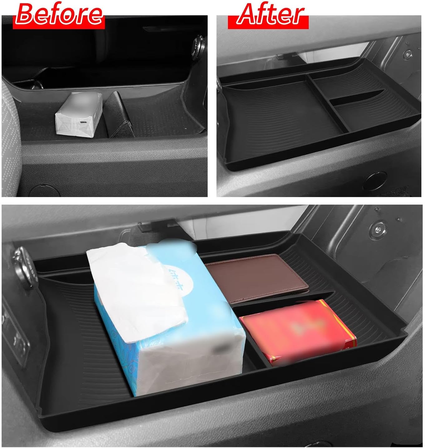 Product Name: Car Armrest Organiser TrayProduct Material: PlasticProduct Color: BlackProduct Weight: 0.5kgPacking List: 1*Car Armrest Organiser TrayFeatures:The Center Console Tray Organizer is made of high-quality ABS material, which is durable, crack resistant, and can be used for a long time.The Car Armrest Box and Car Armrest Tray feature custom fit designs to keep the center console clean and fully utilized.The Car Center Console Organizer Tray has multiple compartments and partitions, which increase storage space and make it more practical.This Center Armrest Secondary Storage Box keeps your items organized and easy to access. Make full use of space and eliminate clutter.Easy to install, no additional tools or modifications required. Simply place the Center Console Tray on the center console.