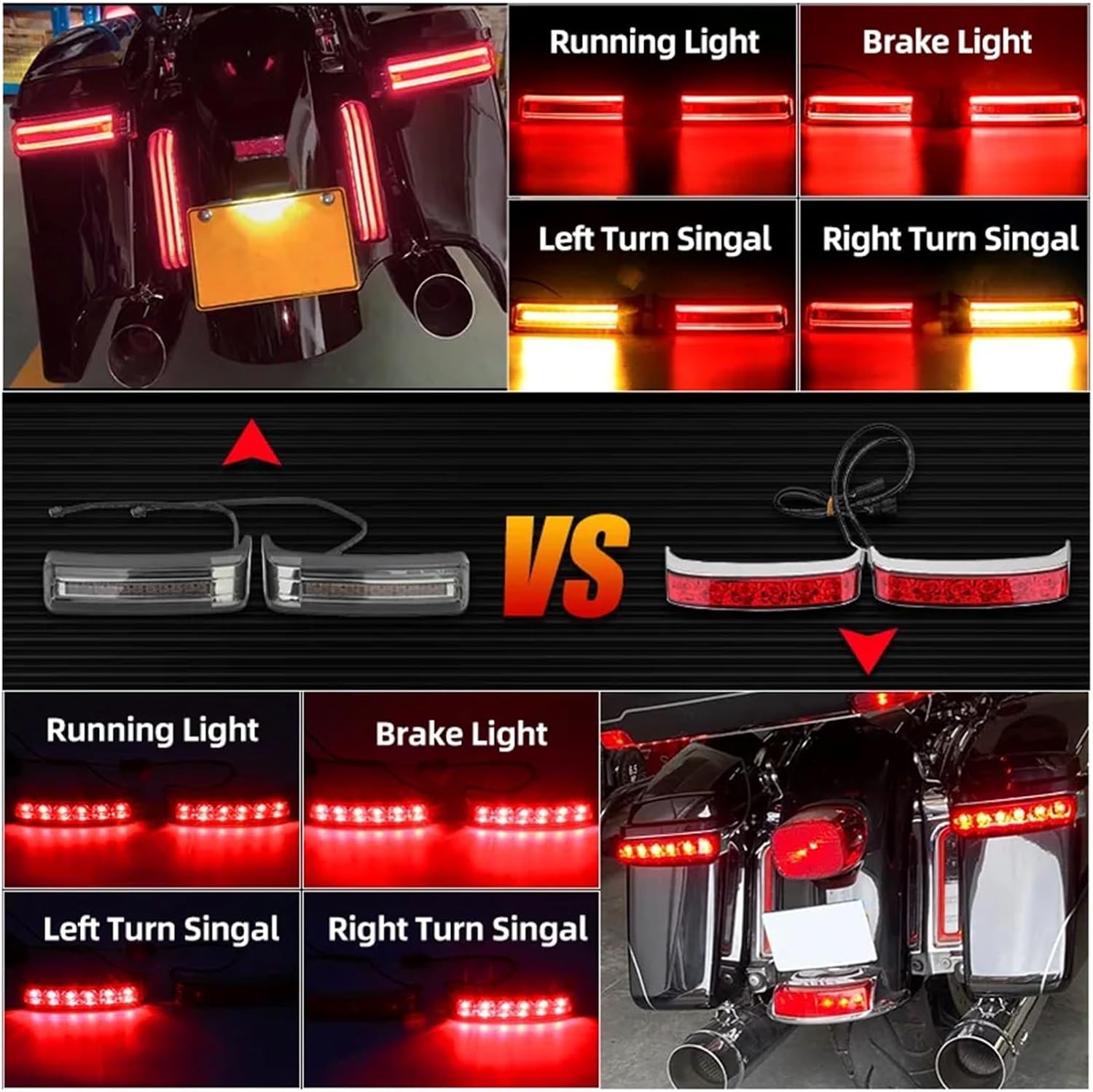 Motorcycles Accessories Led Saddlebag Turn Signals Taillights Rear Stop Light Compatible With Harley Touring Street Glide Road King 97-22Specification:Color: As the picture showsSaddlebag Light 1997-2013:Compatible With Harley Touring 1997-2013 models equipped with standard or stretched saddlebags. Saddlebag Light 2014-2022:Compatible With Harley Touring 2014-later models equipped with standard or stretched saddlebags. Package Include: As the pictures1997-20132014-2022Item Type : Turn Signal LightBulk Order : AcceptQuantity : A pairType1 : Brake Light Compatible With HarleyType2 : Run Light Compatible With HarleyType3 : Turn Light Compatible With HarleyType4 : Led SaddleBag Light