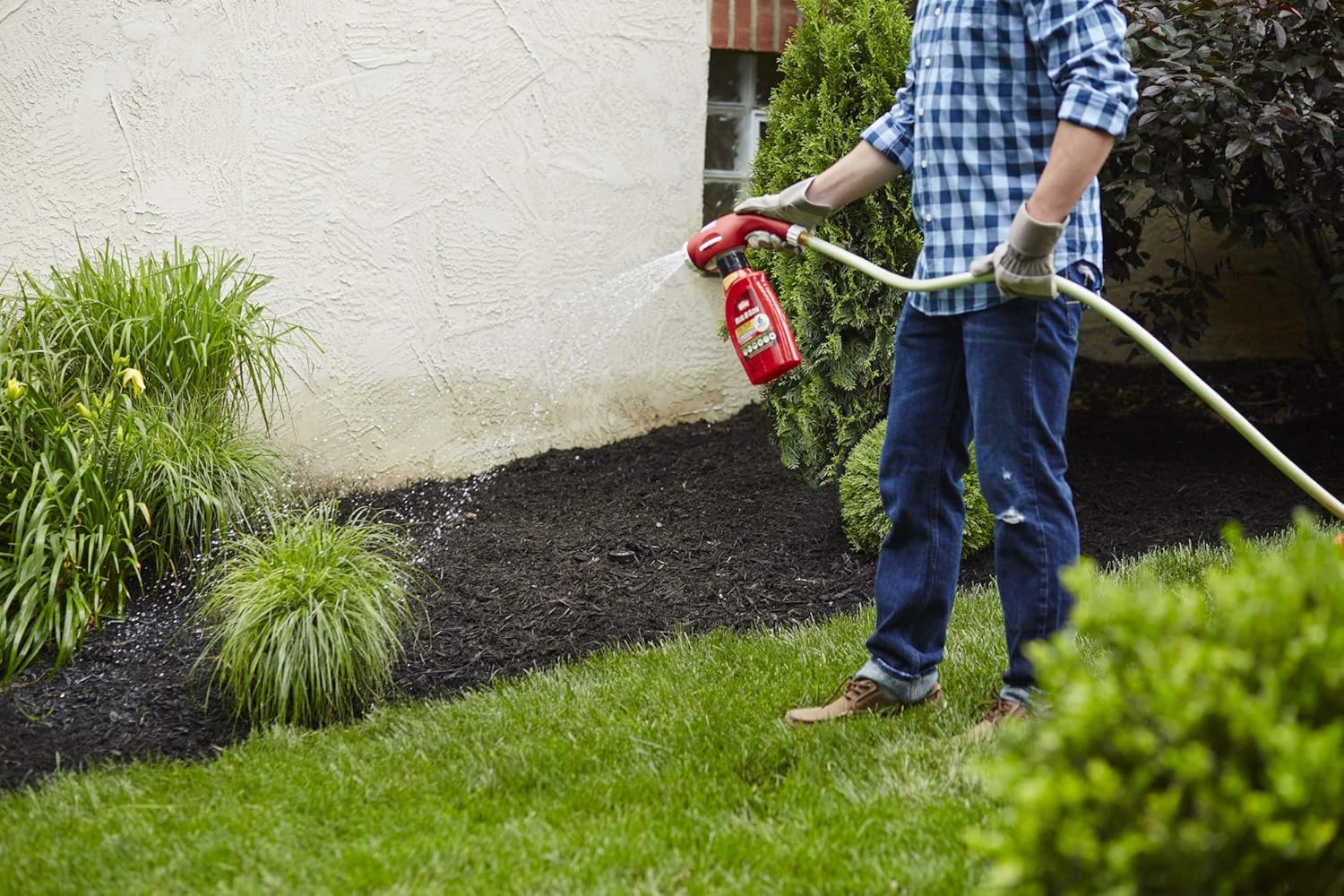 Ortho Bug B Gon Insect Killer for Lawns & Gardens Concentrate1 kills 235 listed insects, including ants, aphids, bees, caterpillars, chinch bugs, cutworms, earwigs, fleas, flies, hornets, japanese beetles, lawn moths/sod webworms, millipedes, mole crickets, mosquitoes, scorpions, spiders, stink bugs, ticks and whiteflies. One bottle makes up to 42 gallons and provides 6-months of protection (applies outdoors to: spiders excluding black widow, brown recluse and hobo). Easily apply with an Ortho Dial N' Spray or a tank sprayer. This product starts to work immediately and satisfaction is guaranteed or your money back. People and pets may enter treated areas after spray has dried.