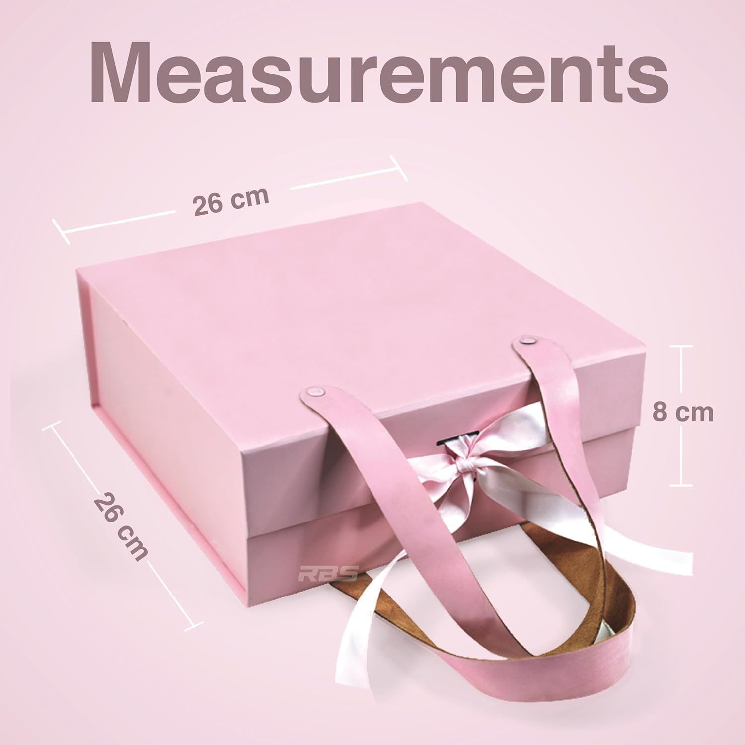 Elevate your gifting experience with our exquisite Gift Packaging Box featuring a luxurious leather handle, designed to hold up to 8kg of your precious items. Crafted with meticulous attention to detail, this Gift box exudes elegance and sophistication, making it the perfect choice for any special occasion. Measuring 26 x 26 x 10cm, it offers ample space to accommodate a variety of gifts, ensuring they are presented in style. The Gift box comes with a ribbon closure mechanism, providing both security and a touch of glamour to your packaging. Whether you're celebrating a birthday, wedding, anniversary, or any other milestone, this versatile empty gift box is sure to impress. Its durable construction ensures that your gifts are well-protected during transportation, while the leather handle offers convenience and ease of carrying. Not only does our gift box exude luxury, but it also offers practicality and reusability. Crafted from high-quality materials, it is built to last, providing long-lasting value beyond just packaging. Create lasting memories by presenting your gifts in this thoughtfully designed box, perfect for making a statement and leaving a lasting impression . Whether you're gifting jewelry, accessories, or other cherished items, our gift box with a ribbon and luxury leather handle adds an extra layer of elegance to your presentation. Elevate your gifting experience today with this premium quality box, designed to delight both givers and receivers alike.