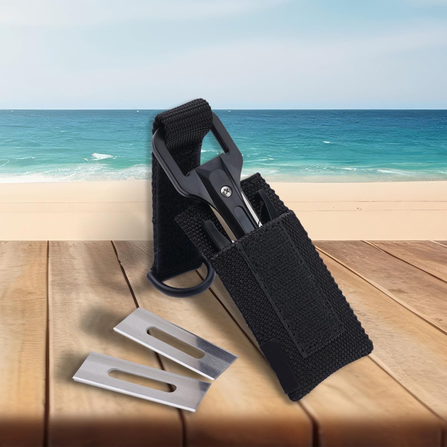 Features:1. The nylon material and glass fiber are used to make the handle, which upgrades the product's strength, hardness and temperature resistance.2. 420J2 stainless steel blade. It is easy to when used underwater for a long time.3. Two spare blades are available for self-replacement.4. High strength nylon cutter cover, can be worn through 6CM webbing, easy to wear on your, waistband and other positions.Specification:Name: Underwater cutterModel: KF-963Material: Nylon+420J2stainless steel+Glass fibre( handle)Specification: 94*36*8MMWeight: 50gProduct List: Thread cutter*1Blade*2blade cover*1