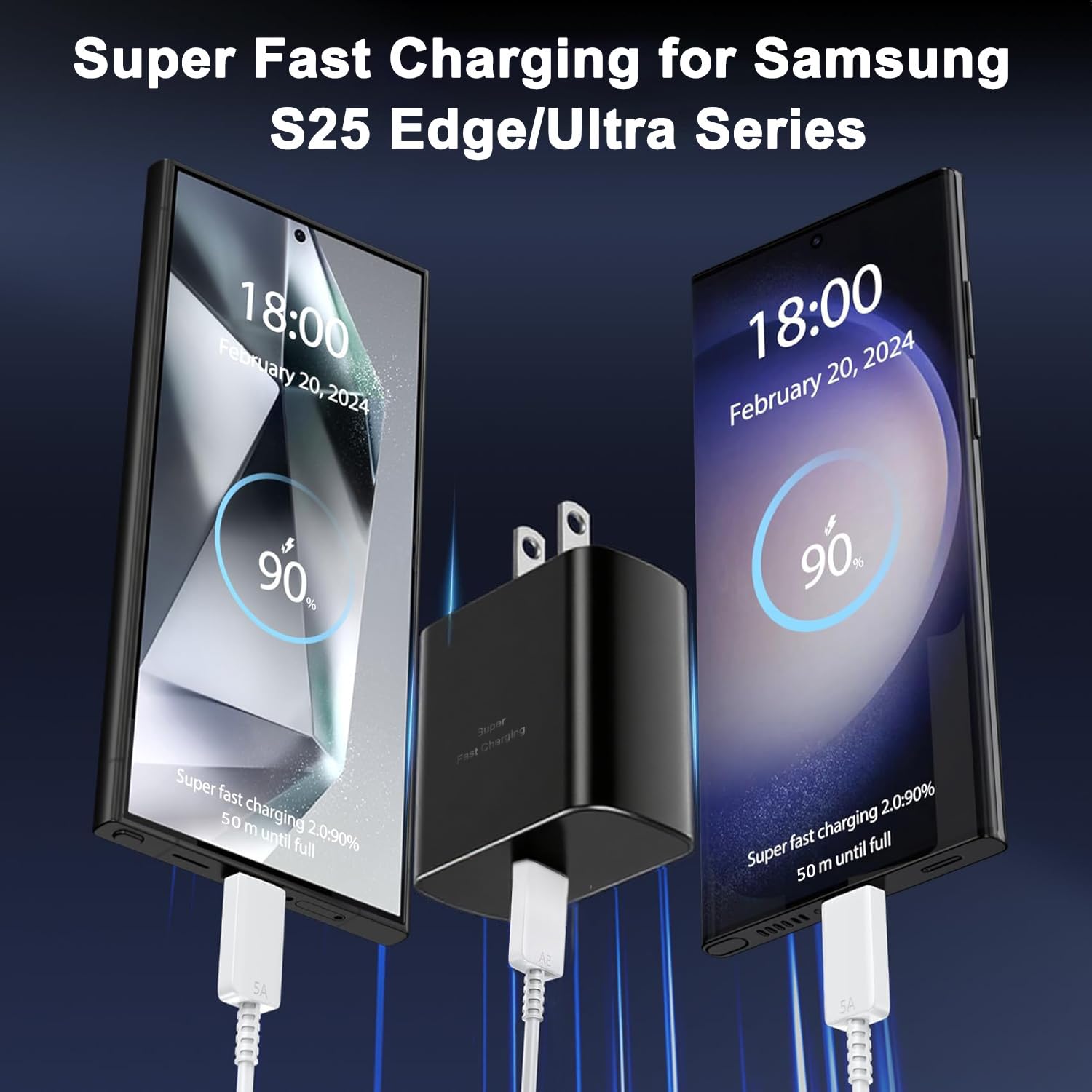 2Pack 45 Watt Black USB C Super Fast Wall Charger Block for Samsung Phones,Tablets,and More6X Super Charger Fast Charging Wall Block-USB C super fast charger provides Max 45W output power,full charge Samsung galaxy S25 Edge,in Only 50 mins,saving over half of hour than 25w super charger.Can greatly reduce the charging time of the device.Safety protection-45W USB C Android phone charger block has multiple built-in protection measures to protect your device from damage caused by overcurrent,overvoltage,overheating,and overcharging issues.Automatically stop charging when the battery is fully charged to ensure the safety and lifespan of the device.Easy to Carry-2Pack USB C Wall Charger,ideal for home,business and worldwide travel.Compact size design,it is exceptionally handy on-the-go,and even the smallest bag can be easily stored during travel.Universal compatibility-Samsung Galaxy S25 Edge,S25 Ultra,S25,S25+Plus-Samsung Galaxy S24 Ultra,S24,S24+Plus-Samsung Galaxy S23 Ultra,S23,S23+Plus-Samsung Galaxy S22 Ultra,S22,S22+Plus-Samsung Galaxy S21 Ultra,S21,S21+Plus-Samsung Galaxy S20 Ultra,S20,S20+ Plus-Samsung Galaxy S10,S10+,S10e,S9,S9+,S9 Active,S8,S8+,S8 Active-Samsung Galaxy Note 20 Ultra,Note 20,Note 10,Note 10+-Samsung Galaxy A02s,A03s,A03,A3,A5,A6,A7,A8,A9,A10,A11,A12,A13,A14,A15,A16-Samsung Galaxy A20,A21,A21s,A22,A23,A31,A32,A40,A41,A42,A50,A51,A52,A53,A54,A55-Samsung Galaxy Z Fold 3/4/5/6/7,Galaxy Z Flip 3/4/5/6/7-Samsung Galaxy Tab A7/Tab A8/Tab A9/Tab S6/Tab S7/Tab S8/Tab S9/Tab S10-For iPhone 17 Pro Max,17 Pro,17 Air,17-For iPhone 16 Pro Max,16 Pro,16 Plus,16,16e-For iPhone 15 Pro Max,15 Pro,15 Plus,15-Pixel 10/9/8/8 Pro/7/7 Pro/6/6 Pro/6a/5/5a/4/4a/4XL-And More USB-C DevicesWhat You Get-2 Pack 45W Samsung USB C Super Fast charger Block- Black(Cable Not Included)