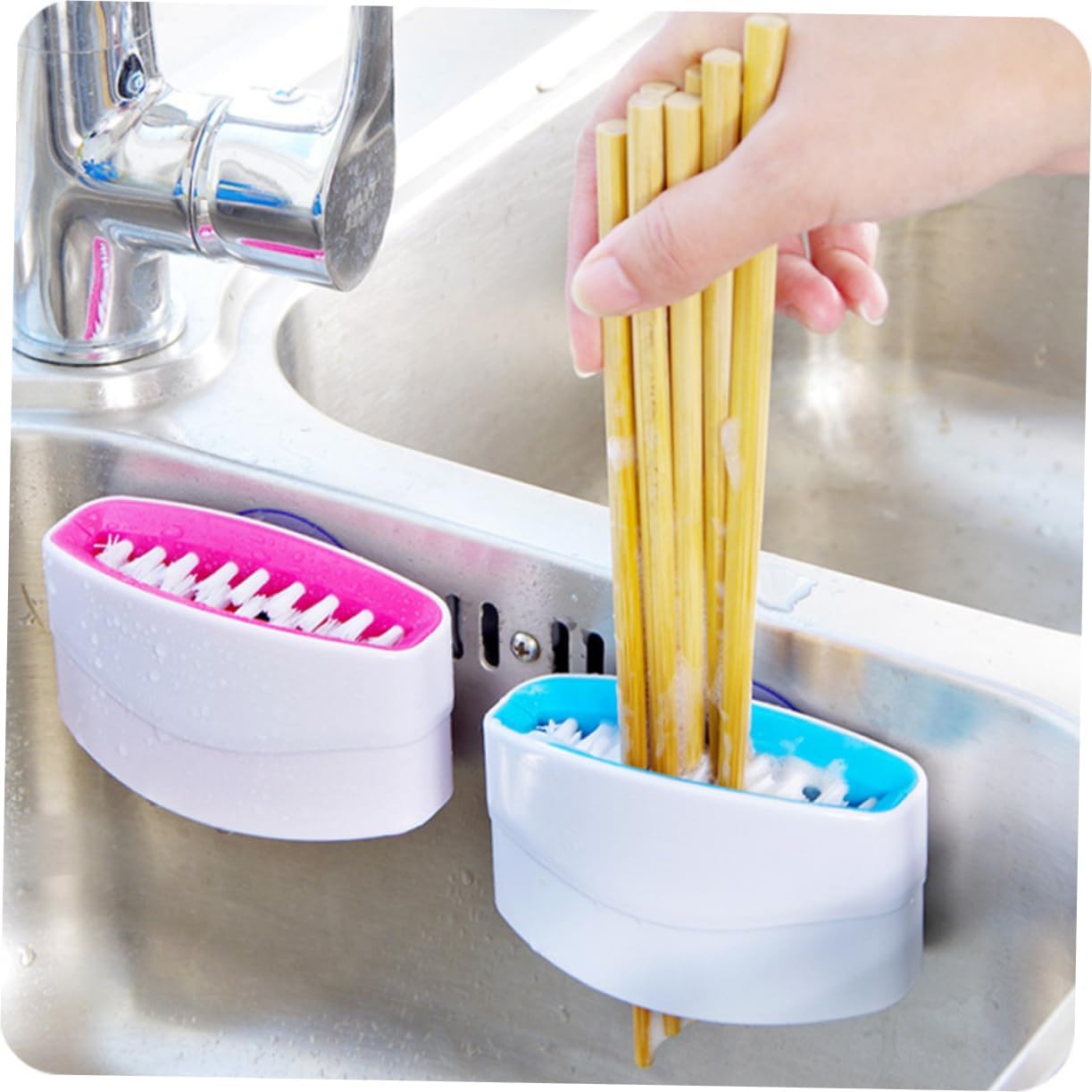 Welcome to my store! Package includes 9 x cleaning brushFeatures - Material: plastic fork brush. - size: about 11 x 6 x 3 cm cleaning scrubber. - color: random color kitchen washing brush. - you can stick it on the wall, tiles, sink and other places where you want brushes. of chopsticks.: Scouring pad with scrubbing head easy to remove and install.- with suction cup, strong sticky, not easy to fall off the cleaning brush.- can be used to Clean chopsticks, cutters, suction cutlery brushes from vegetables and fruits. - Made of material that will ensure durability.?Removable cleaning brush.?cleaner brush- Creative design will make it more practical dish cleaner brush.products description The dish cleaner brush can be used to clean chopsticks, cutters, vegetables and fruits.?Kitchen brush easy to remove and install.?Cleaning brush made of premium material for durable and practical use.?Chopstick cleaning brush are you looking for??Are you looking for a durable and multifunctional kitchen cleaning brush??It will be a good choice