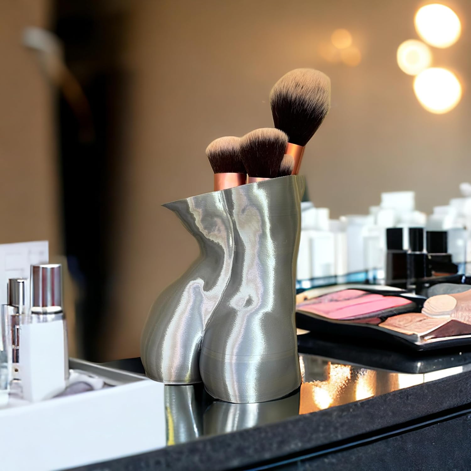 brush holder goddess woman sculpture butt Vase,hot body unique makeup organizer, storage pen, vanity organizer, pot vase (Silver)