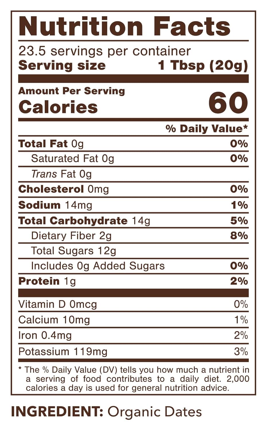 | Flavor | 100% Dates |