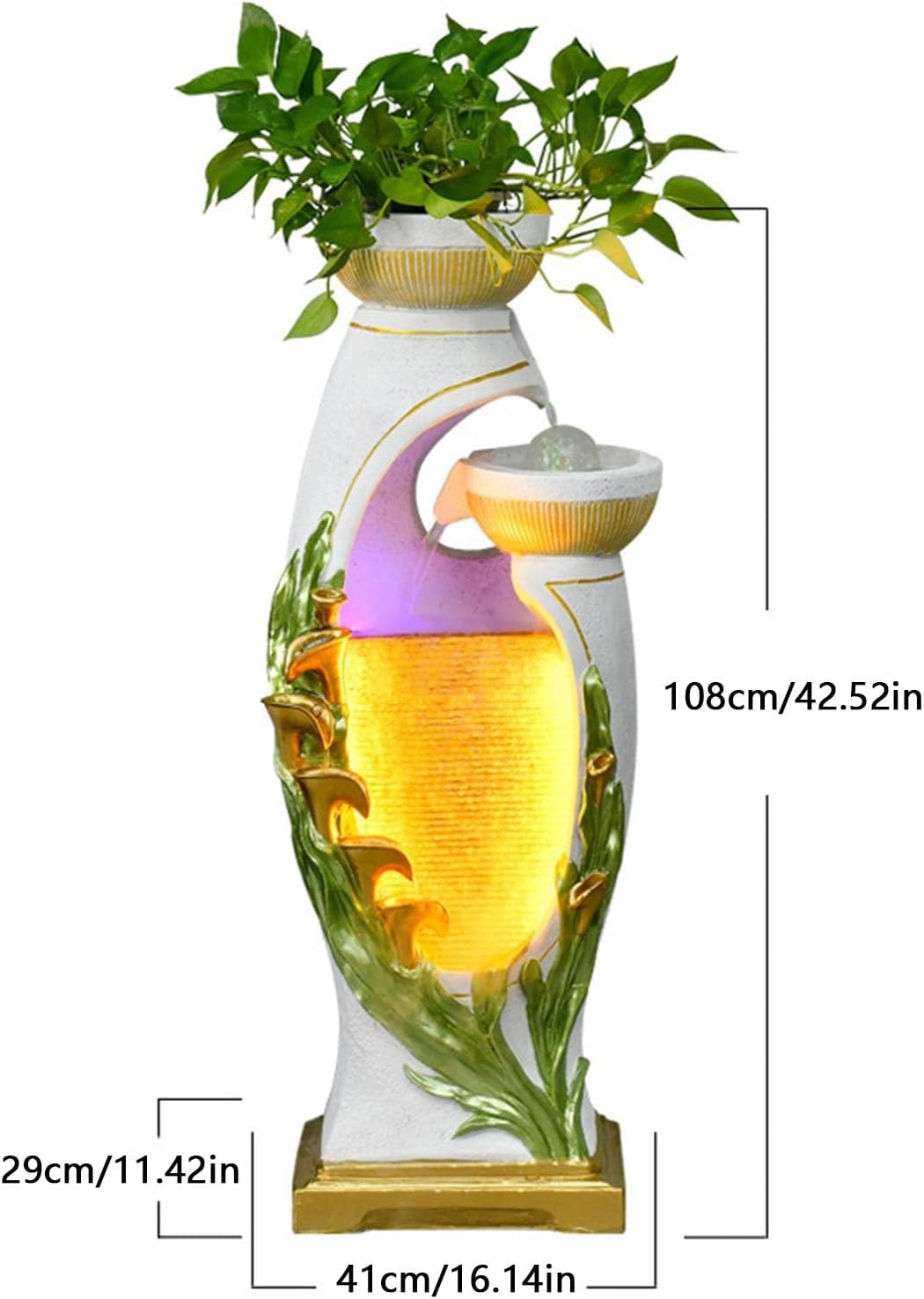 Easy to Install: Our water fountain outdoors does not require any specialized tools or expertise to set up, and the entire installation process can be completed in just a few simple steps.Product name: Indoor Floor FountainMaterial: ResinUse: Home decoration, gift, etc.Product Size: as shownApplicable scene: living room, dining room, bar, lounge, etc.Packing list: Indoor Floor Fountain*1Notice:1. Due to different light and shooting angles, there may be slight color difference, please understand.2. Please confirm the color before purchasing.3. Products do not include products other than those pictured.4. Manually measure the size, there may be some small errors, please refer to the actual product, thank you.