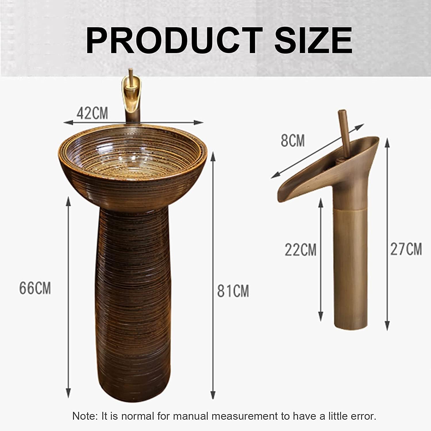 This Pedestal Sink catches your attention especially thanks to its really unique design. ? The mix of romantic and elegant give this a look, make Home bathroom or Business Hotel Restaurant as charming it's practical. 1. Sleek Elegant Design, Smooth Lines, Curved Corners, Safer for Use. 2. Modern Simplicity , Glaze Glossy, Delicate, Easy Clean, Not Sscratch. 3. High Temperature Integral Molding, Seamless, No Leakage, Longer Service Life -Overflow: No - Type: Sink - Sinks Material:Ceramic Construction - sink Size :See detailed size chart -Premium quality ceramic construction, Ceramic: maintain clean. delicate solid with crystalline glaze. - Durable Ceramic clean. Package: column basin *1 Faucet *1 〖 Customer Service〗 √ We are committed providing you the highest service addressing any concerns issues promptly ensure satisfaction. √ please contact us by email, all questions will be answered within 12 hours. √ Look forward working you.
