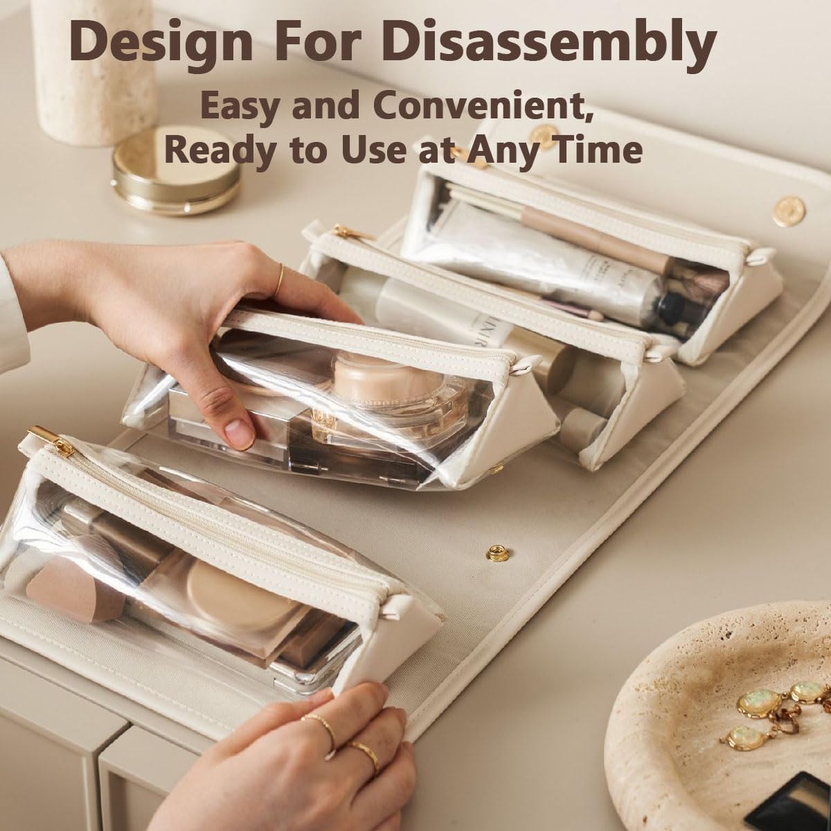 Discover the practical solution for your travel needs with our womens leather waterproof cosmetic bag The portable and lightweight design, complete with convenient double handle, makes it perfect for traveling,Travel essentials Material: Leather + Pvc Size: 9.4 * 4.7 * 4.7in Color: White, Brown Package included:Leather Toiletry bag × 1