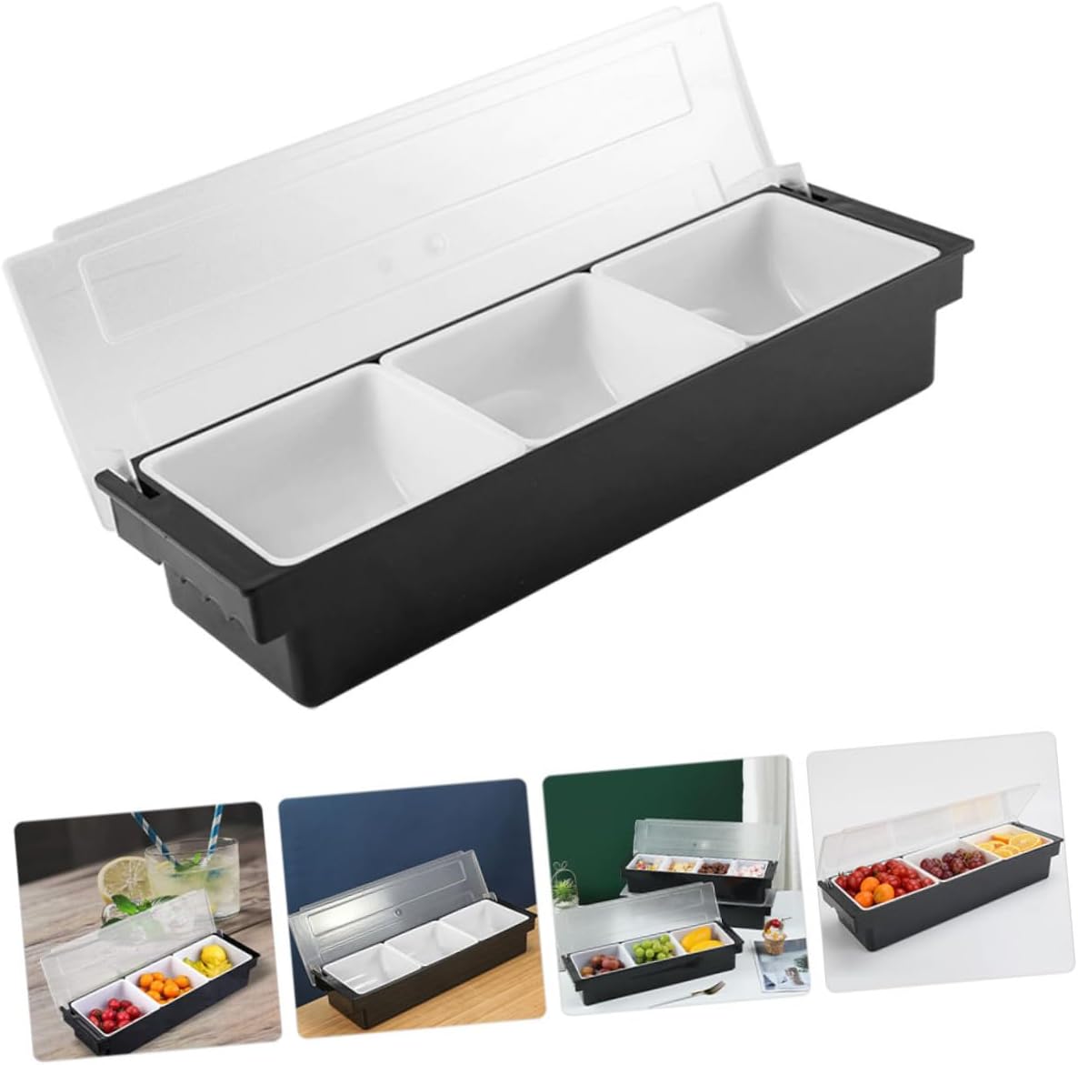 Package List 1 x 3-compartment Bar Fruit Box Features - Size: About 50.00X15.50X9.50cm/19.65X6.09X3.73in Bar Condiment Case - Color: As Shown dry fruit container - Material: ABS, PP snack container - Light in weight and compartment storing areas, can bring you of convenience, practical to use plastic snack container. - Each compartment case can be removed for ease of cleaning and refilling, easy and convenient dried fruit case. - for holding dried fruits, candies, snacks, desserts, chocolates, biscuits, fruits, ice cream candy box. - Well-made of and sturdy materials, safe and practical for long-lasting using time plastic snack box. - Detailed workmanship, this snack case is not easy to deform or break, very sturdy and supporting long servicing time Bar Condiment Box.Goods Descriptiondried fruit case Can be used to store candies, snack, fruits and so on, can be one of your choices.Bar Condiment Case Still looking for a practical compartment snack container? If so, please look no further! Our product is adoption of good materials, safe and light, and can surely satisfy your storage demands