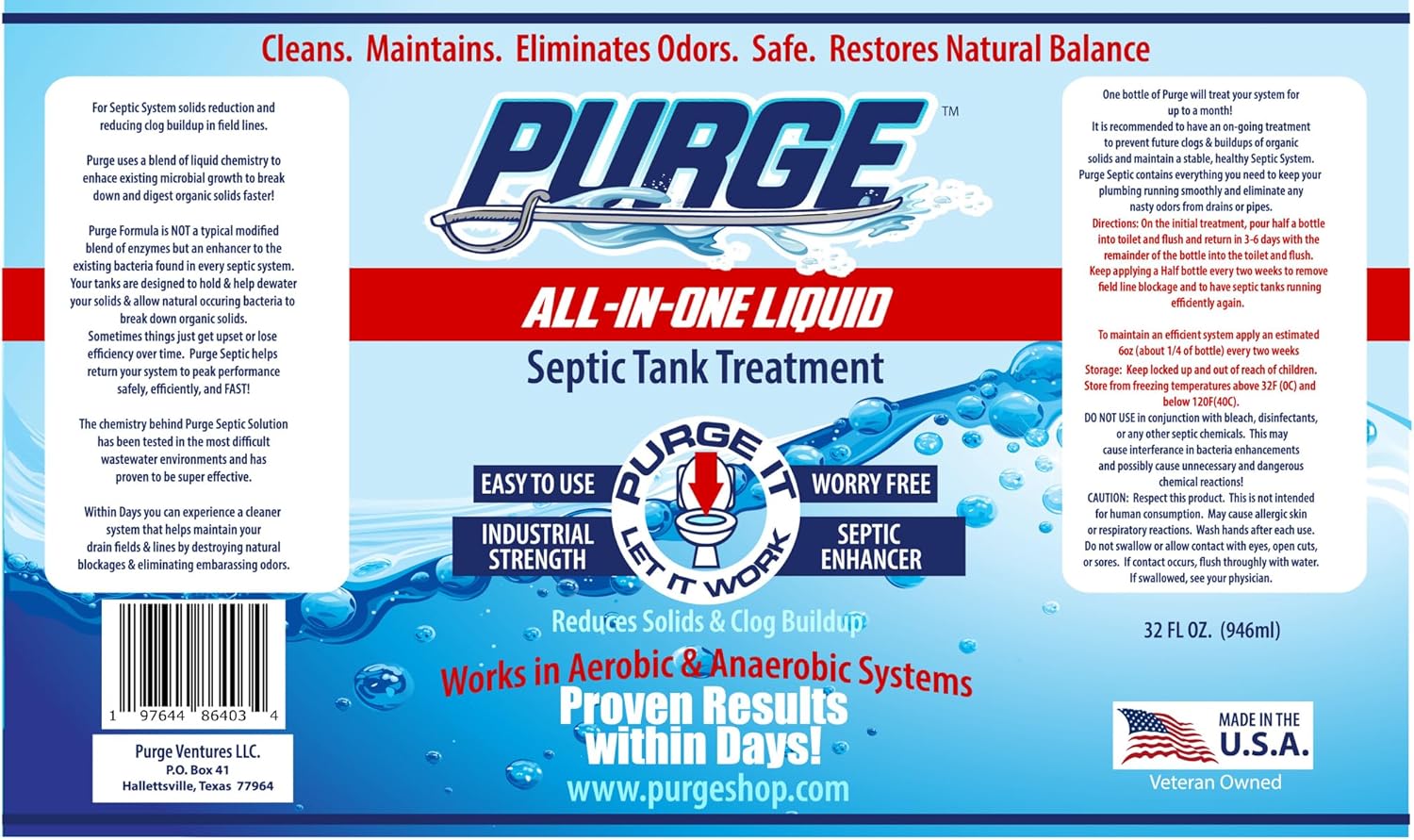 | Product Benefits | Reduces organic solids and eliminates odors in septic tanks and drain fields: Organic sludge and clogs reduction and improves septic tanks and drain field plumbing. |