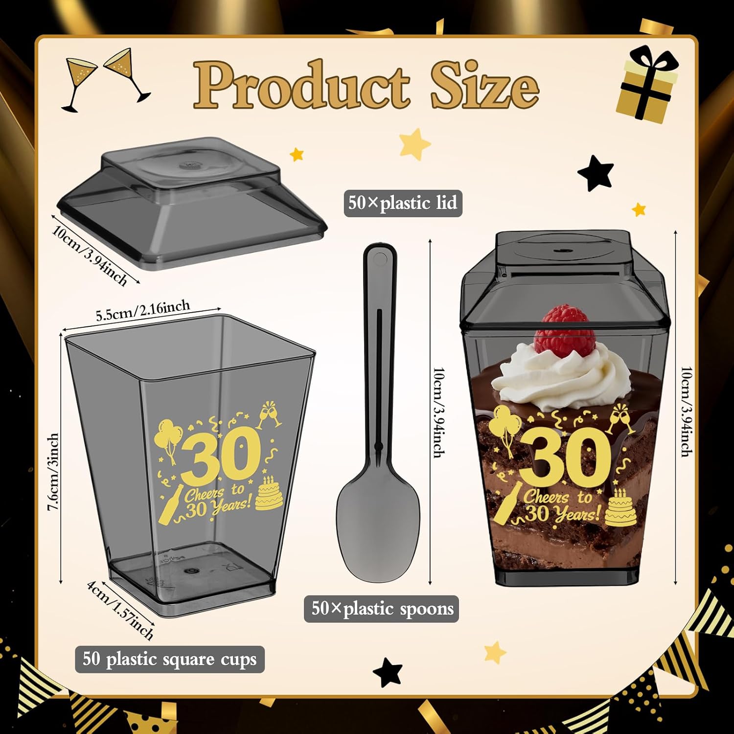 Features: These disposable cups will be a fun and meaningful finishing touch to your party decorations. The black dessert cup comes with a black lid, which effectively prevents food from staining and keeps food fresh. Specifications: Material: plastic Color: transparent black Size: about 2.28 x 2.95 x 1.57 inches Package includes: 50 x Black transparent dessert cup 50 x Transparent black lid 50 x Transparent black spoon Notes: Manual measurement, please allow slight errors on size. The color may exist a slight difference due to different screen displays