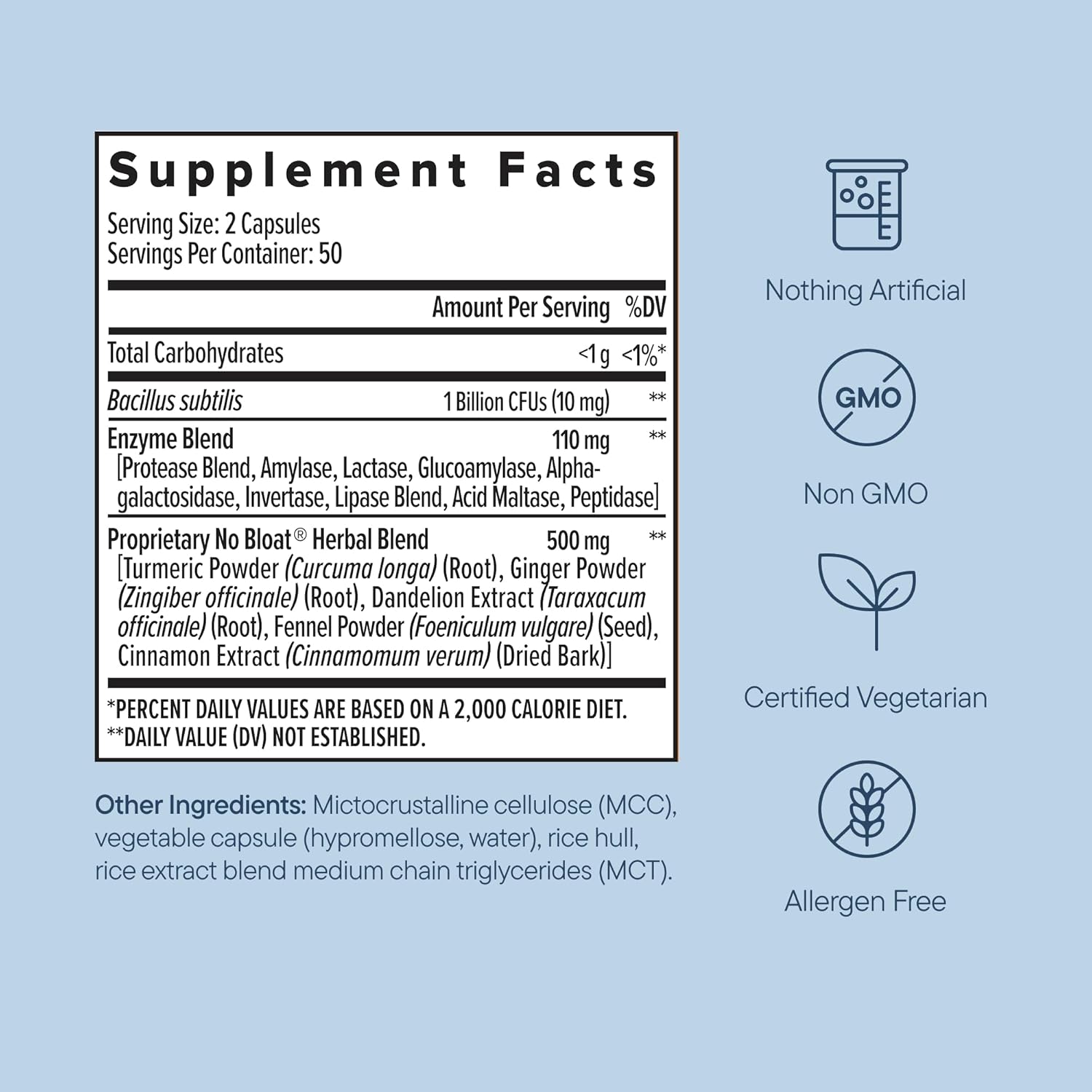| Special Ingredients | Bacillus Subtilus, Lactase, Lipase, Alpha Galactose, Probiotics, Digestive Enzymes, Turmeric, Ginger, Dandelion, and Cinnamon to Relieve Bloating and Imrpove Digestion for Women and Men |
